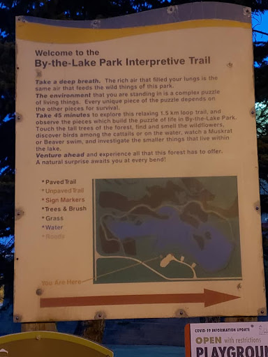 Read moreBy the lake park a great place to hangout with friends and family or just by yourself. A very clean park with plenty of space to having a personal get together with friends and family. There's a path that wraps around the man-made lake that you can enjoy. Halfway around the path there's a gazebo, if you want to look at the lake and enjoy the park's beauty. There's indoor washrooms, a place for a big indoor event and sometimes you can buy icecream at the main building. There's saskatoons free for the picking. What's a park without a playground that has trees in the right places and with a water sprinkler at a push of a button. There's plenty of benches throughout the beautiful park. A deck that you can go look at the water fowls, ducks, geese, swans and pelicans. Check it out you will enjoy by...