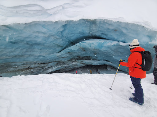 Read moreTo find the glacier cave, take the tow bar up after getting off Glacier express lift. You'll then have to hike up a bit to get to the bowl on the other side. After getting down the steep part of the bowl, you'll see some rocks to the right if the trail. Just over one of the rock ledges on the right of the blue trail, you look over and see the cave. I'd say it's definitely worth the adventure to find it and then ski down glacier park after. It may take over an hour though from start at glacier express to getting on accelerator at the end. Challenging, beautiful, scenic and a...