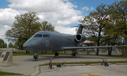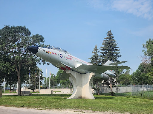 The air Force heritage museum park has nine aircraft on posts: Cf-86 sabre Grumman anti-submarine aircraft F100 Canuck Cf-101 voodoo Canadian passenger jet prototype Kiowa helicopter Harvard trainer A small single engine trainer CT-133 silver Star (looked a lot like a p-80 shooting star to me) A retired NORAD/DEWline radar antenna