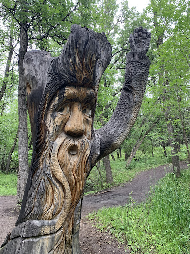 First time going for a walk in this part of the Seine River Trail. Nicely treed with oaks, cottonwood and elm. Crushed stone trails with markers indicating where a Wood's Artist has displayed his craftsmanship. The Seine snakes it way through the hilly landscape and there are small overlooks of the river. Deer, rabbits and squirrels frequent the area and feel content as hikers pass through their home grounds. With entrances on Shoreline and John Bruce Rd, small bridges and culverts allow a pleasant journey for hikers and bicyclists. Small off-trails of mud offer a sense of adventure for those inclined.