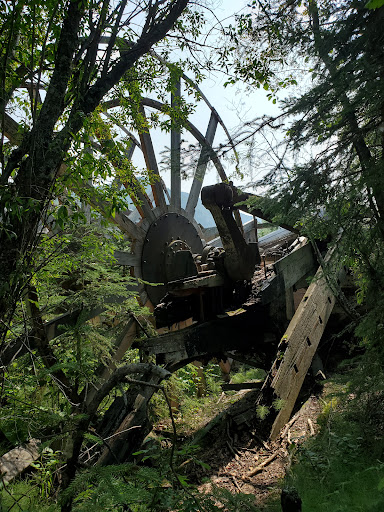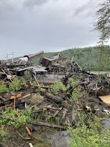 Remains of several paddle wheelers crumbled together although you can differentiate them. If the water is low enough, walk along the shore, much easier than in the forested path. You can access either by driving to the end of the Yukon River campground near site 50(?).