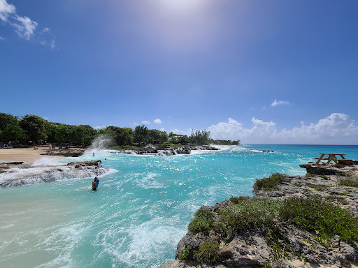 Read moreTourists and cruise passengers are easy to find here. With that said, there is a reason why. It is a beautiful spot. You have 2 viable water entrances flanking each other. Water funnels through here with some good waves which means you probably don't want to get to close to the rocks unless you are a strong swimmer. You can stand out there all day and enjoy the water. The drawback is you will not be the only one. You will probably have to work around a group of tourist hanging out in the water with their beer. I wouldn't plan on spending all day here. There are quieter spots.