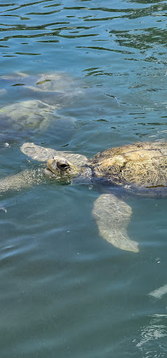 Is it turtle poop or floating poop-colored seaweed? We’ll never know. But it’s kind of everywhere in the turtle lagoon snorkeling pool. The swim started slow (1 tiny turtle, 2 fish), but ended strong at the far end of the twisting pool with a whole bunch of large turtles, lots more fish, and a shark sitting behind a window. Complimentary beach chairs in the sand are a nice spot for a break...
