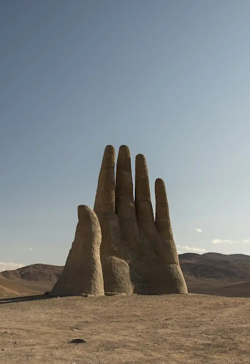 The Mano del Desierto is a large-scale sculpture of a hand located in the Atacama Desert in Chile, about 60 km to the south and east of the city of Antofagasta, on the Panamerican Highway. The nearest point of reference is the "Ciudad Empresarial La Negra" (La Negra Business City). It lies between the 1309 and 1310 km marker points on the highway he giant hand sculpture can be found in the Atacama Desert in Chile, one of the driest and most deserted places in the world. Created in 1992 by Chilean sculptor Mario Irarrázabal, the work soon came to be known as the Mano del Desierto, Desert Hand. The idea behind the huge hand reaching out to the sky was to express human frailty, pain and loneliness. It is an homage to the vulnerabilities and weaknesses of the human soul in the face of injustices and suffering around the world. The sculpture is 11 meters tall and is located 1,100 meters above sea level. It is a massive and majestic statue which dominates the entire valley. The statue was built in iron and concrete in order to rough the extreme temperatures of the Atacama Desert, which is known for its heat in the daytime and extreme cold at night. It can easily be seen from a distance as well, and can be visited via Route 5, the Pan-American Highway which is located about 43 miles from the city of Antofagasta. The Mano del Desierto is often victim to vandalism by tourists, due to its secluded location. It has been painted and graffitied. Thanks to the help of volunteers, the statue is cleaned every six months and restored to its...