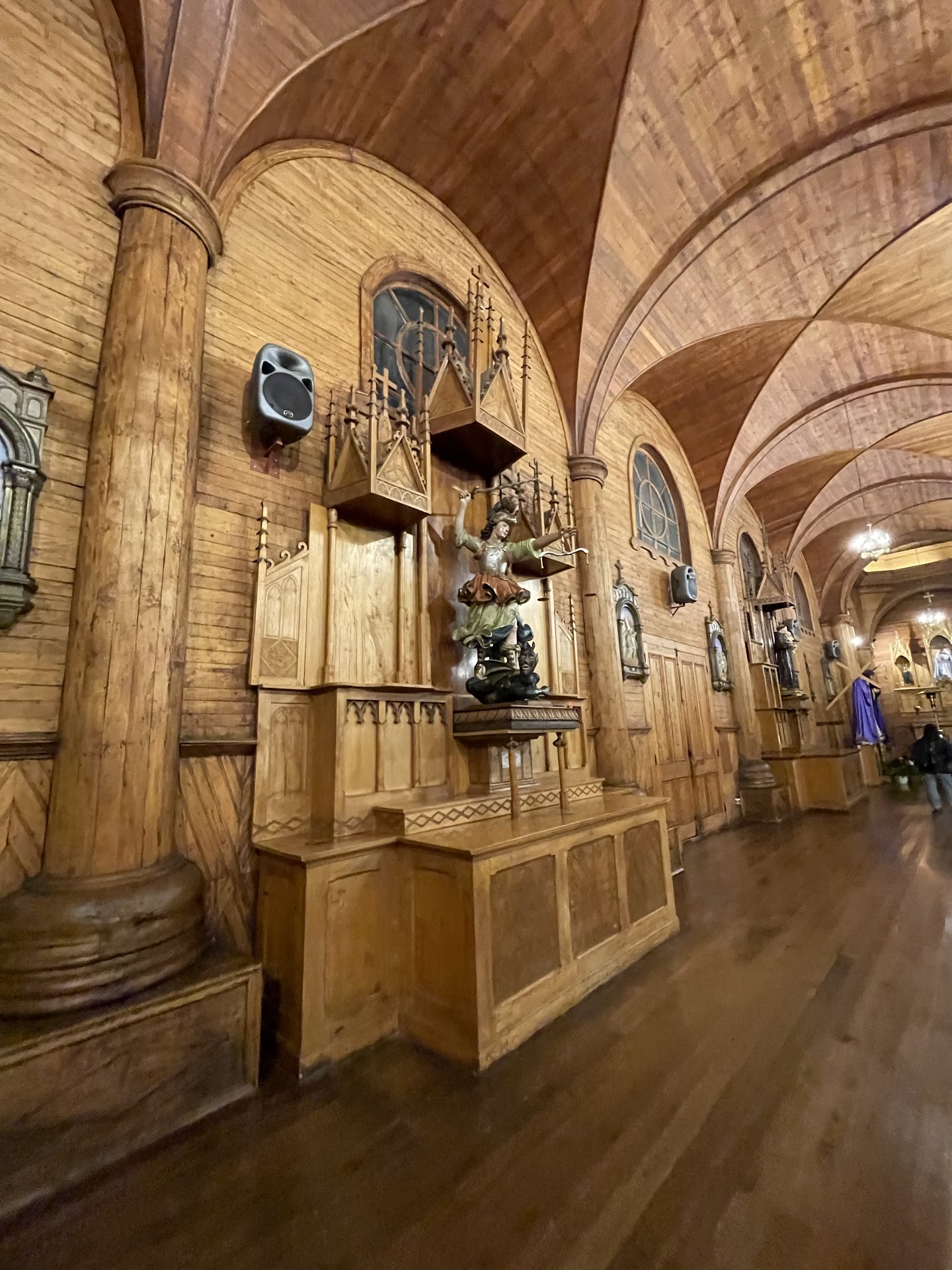 Grata sorpresa! Aunque creo que el exterior no se condice con el interior de la Catedral (que me encantó). Por fuera, demasiado pintoresca para mi gusto, mientras que en su interior, completamente de madera, es muy muy acogedora, elegante y bella.