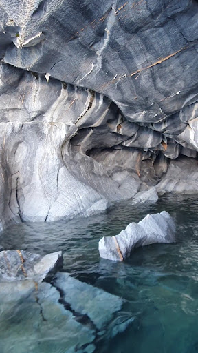 A large glacial lake in the shadow of the Andes with a remarkable complex of carved marble caves on its shores.