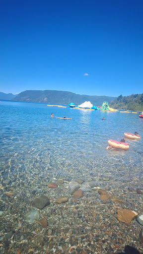 Read moreHay de todo para comer. Baños públicos aunque son quimicos. La playa es limpia y me atreveria a decir que gente agradable y de buenas costumbres la visita. No puedes llegar sin auto. Y después de las 11.00 hrs el auto queda lejos estacionado y te toca caminar bastante con tus bolsas y cosas, lo que lo hace incómodo. En este sentido no es apto para personas con dificultad en el desplazamiento, salvo que llegues muy temprano y eso te permita llegar hasta la playa misma en auto con ellos. La playa en si es angosta y tiene mucha piedrilla por lo que si o si hay que llevar zapato de rio. No me gustó que para poder ubicarme por ir a las 12.00 tuve que caminar hasta el fondo de la playa sobre las piedrecillas y quedamos super lejos de los baños y lugares de comida (si hubiéramos querido). Creo que la buena ubicación solo será llegando muy temprano. Aunque solo al fondo te toca bañarte con el lago casi solo para ti, porque al principio estaba muy lleno...un quitasol al...