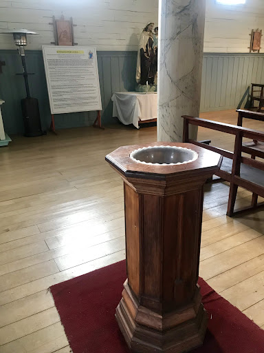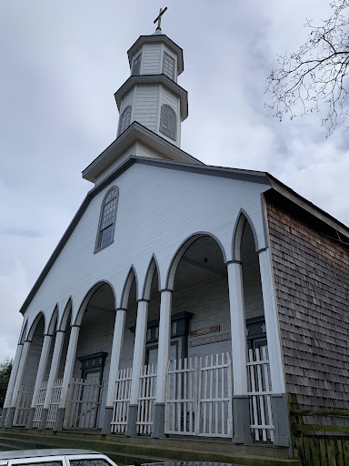 Read moreOtra maravilla de construcción en madera pero solo abre con misas "blancas" . En contraposición a la fuerte magia de Chiloé clasificada de brujería como negra . Luce como alegoría entre el bien y el mal en un escenario vegetal impresionante de bosque nativo predominante. Hasta estos días la mezcla europea con esta latitud polar sur crea un vivo misticismo religioso que transgredio sus propios límites de ambas culturas dando origen al chilote . Y lo más curioso y no coincidente es el hecho de cuevas siempre cercanas a estas iglesias donde la congregación de "brujeria" se junta de la misma manera que una iglesia. Dualidades . Dualidad como tal. Cuevas en la tierra probablemente prehistóricas aludiendo al Inframundo y la iglesia en la superficie "mundo terrenal" que se extiende con su altura...