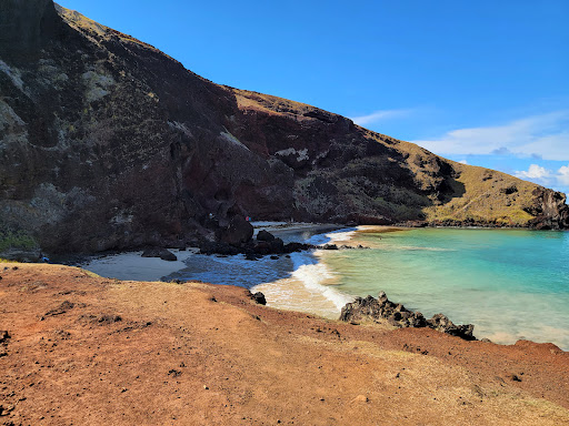 Read moreNice little beach tucked away off a little path. No guide needed to see it, but it's risky with all the falling rocks and coastline that is becoming destroyed naturally. It's not really maintained, so be careful. It's very peaceful here, but there is also a burial site that the Rapa Nui people would send off...