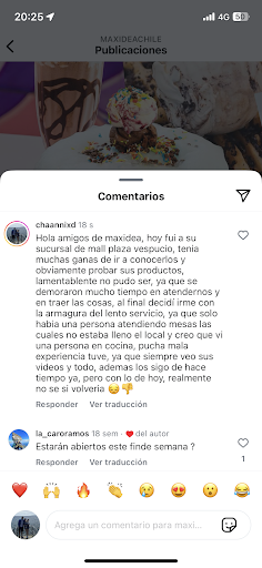 La verdad me encanta Max idea amo sus helados y tortas. Pero tuve una mala experiencia en el local que está en Larraín el día 28 de septiembre compre un helado de snikers y cuando lo estaba comiendo me salió entre medio estás mosca que claramente no era del ambiente ya que estaba muerta. Yo además estoy embarazada y me dio mucho asco. Doy aviso para que revisen esos lotes y quiero agregar que casi no compro en ese local porque el chico que estaba atendiendo lo hizo de mala gana, cuando le pedí para probar helado me los dio de mala gana y después llegó atendió a otra persona y me dijo “ya va llevar algo “ le dije dos helados simples, no tenían conos y además cuando me los entrego no me dio cuchara y le dije que si me lo iba dar sin cuchara a lo que él respondió y la que le di para probar el helado y yo la había botado, el se rió y me paso otra de mala gana. En ese momento me dio mucha lata haber comprado me estuvo apurando todo el tiempo y además me salió la bendita mosca después. Yo he ido varios locales siempre me han tratado muy bien, sin embargo esta vez fue bastante mala la atención no volveré por lo menos al...