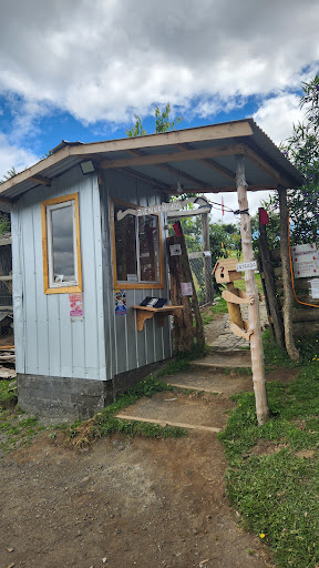 El lugar cuenta con mesas donde sentarse a pasar el rato. Venden cositas ricas para comer hechas ahí mismo, como kuchen o queque.