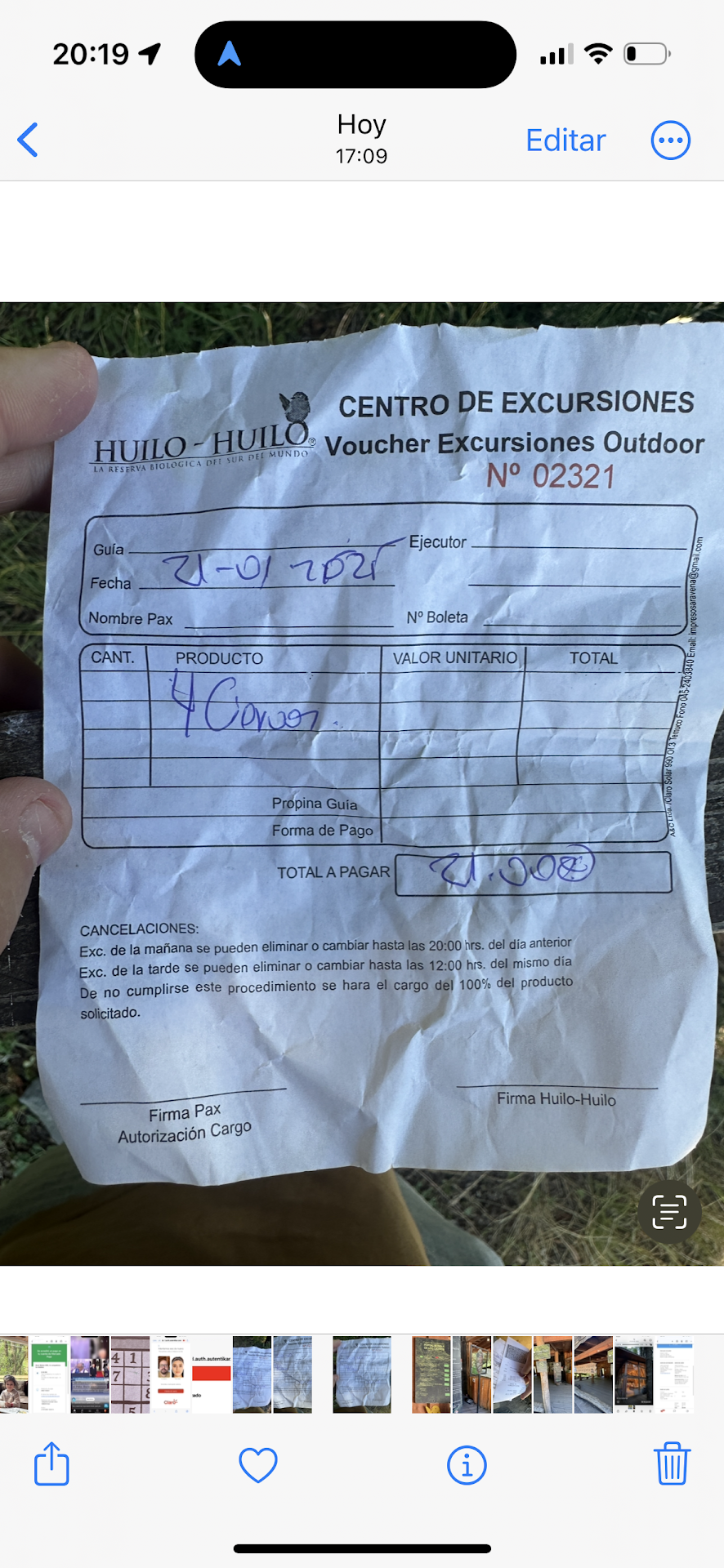 Al pagar $21,000 CLP , inicialmente solo me entregaron un ticket denominado “Voucher Excursiones Outdoor”, el cual no incluía desglose del pago ni timbre válido del SII, incumpliendo las normativas tributarias.