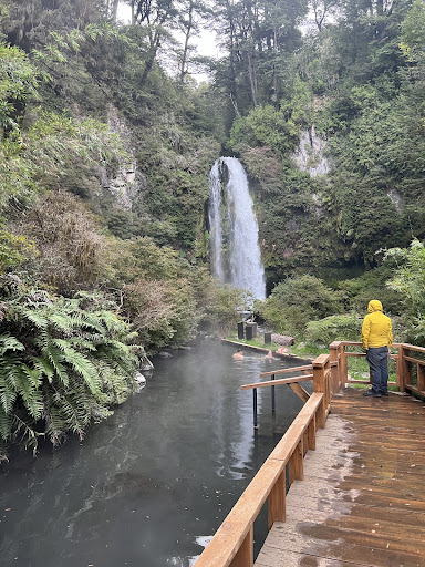 Hot springs near Coñaripe at half the price of most others. The views from the pools are stunning, with a large waterfall in the backround nestled inside old growth native forest. There are only 3 pools and a couple of tubs fed by the hot springs, but it wasn't too busy so we didn't feel like this was a problem at this time of the season (i recommend visiting in the low season). The more "natural" Pools with a rocky bottom are full of vegetation on the edges, which gives the experience a very unique feel as the ferns and other plants reach into the pools and you can hide from the sun under them. Facilities were good with plenty of bathrooms and changing areas and lockers, everything was clean. Had a picnic area and designated smoking spot and plenty of parking space....