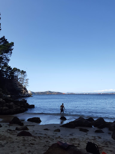 Linda playa, un poco chica y con poca luz (se va temprano). Considerar que es de dificil acceso porque se debe ingresar desde caleta lenga, pasando un portón que dice propiedad privada, luego seguir el camino del auto hasta doblar a la derecha en una bifurcación, luego intentar ir lo mas pegado a los árboles (costa) posible porque no está bien delimitada la bajada y la playa no se ve desde el camino vehicular (ir revisando con el mapa para no llegar a Ramuntcho). Bajar con mucho cuidado porque hay tierra suelta, rocas y una bajada pronunciada, recomiendo llevar zapatillas. Favor no contaminar el lugar y guardar silencio porque es un lugar super tranquilo, pequeño y Ramuntcho ya se colapsó y contaminó acusticamente con los parlantes y grupos de...