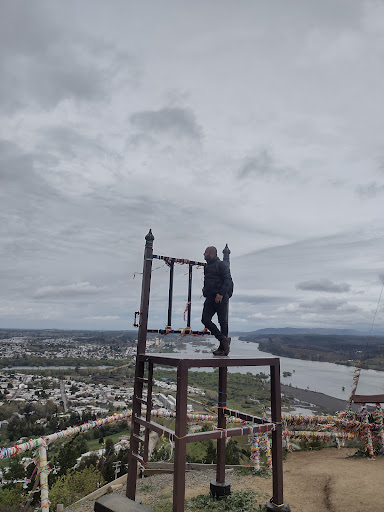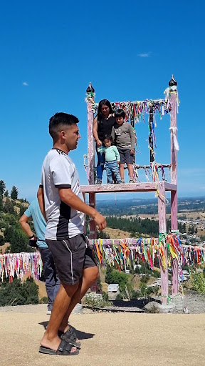 Read moreEs facil llegar te bajas del tren , caminas hasta la plaza de armas y sigues derechito hacia el cerro por la calle esmeralda después por la misma calle llegas a el camino al cementerio tomas el camino de la derecha y sigues las instrucciones hasta llegar arriba nos demoramos como 20 minutos pero es casi pura subida o lo otro puedes pagar por un taxi que te llevé hasta arriba . es divertido el lugar y columpiarse arriba con la vista de todo san Rosendo y laja . También venden cintitas de colores según el significado Y pides un deseo ❤️ Nosotros fuimos un día domingo y habían varios ...