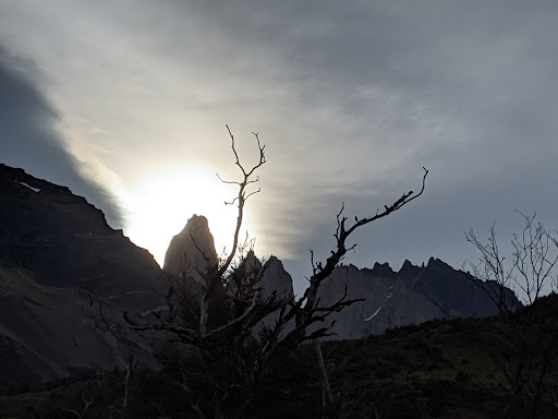 However, it seems that some Chilean vultures smelled money here a few years ago and sold the soul of the surrounding mountains piece by piece. The campsite is extremely overpriced, both the pitches for the tent (45 USD/person?) and the tents themselves (190 USD/tent?). In return you get: toilet and shower, mini market with 8 items, water. Everything you get at any other campsite in the world for a quarter of the price. The 'kitchen' was a covered area with picnic tables.