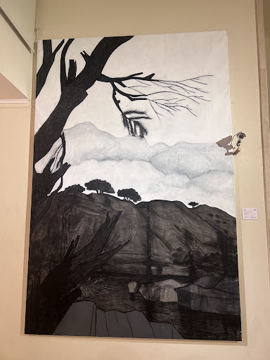 Tiene algunos detalles: una cámara de seguridad tapa y hace luz a un cuadro. Otras luces “queman” las obras y las hacen difícil de apreciar.