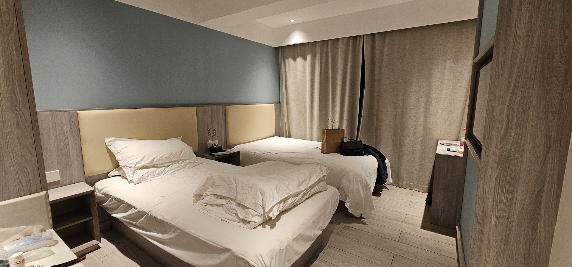 The hotel is indeed located very close to the metro — less than a 5-minute walk. There’s also a McDonald's and a 7-Eleven within walking distance. The staff doesn’t speak English, but with the help of a translator, they assisted me several times without any issues. A nice bonus was that we were allowed to check in an hour earlier than the official check-in time.The hotel interior is pleasant: there are carpets in the hallways, although there is a noticeable smell of cigarettes. Breakfast is a buffet and fairly simple, but you won’t leave hungry: scrambled eggs with bacon, one or two chicken dishes, several side dish options, Chinese steamed buns, and a couple of fruit choices. I didn’t like the coffee and juices, but the rest was acceptable.The room we were given looked nothing like the photos when booking (we chose the Premium Family Room). The view from the window was awful — facing a service corridor of another building, where people were walking and using a sink. Because of that, we couldn’t properly open the window or curtains.It took about 5 minutes of running the tap before the water became at least warm. Bed linen was not changed during our 4-night stay, the floor was cleaned every other day. Towels were replaced daily, and each day we received 3 bottles of water, as well as green and black tea. The hotel provides good-quality shower gel and shampoo, with a...