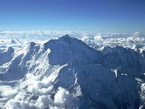 Kangchenjunga was first climbed on 25 May 1955 by Joe Brown and George Band, who were part of a British expedition. They stopped short of the summit in accordance with the promise given to the Chogyal that the top of the mountain would remain inviolate. Every climber or climbing group that has reached the summit has followed this tradition.[7] Other members of this expedition included John Angelo Jackson and Tom Mackinon.Kangchenjunga is the official spelling adopted by Douglas Freshfield, Alexander Mitchell Kellas, and the Royal Geographical Society that gives the best indication of the Tibetan pronunciation. Freshfield referred to the spelling used by the Indian Government since the late 19th century.[3] There are a number of alternative spellings including Kangchendzönga, Khangchendzonga, and Kanchenjunga.[10[12]