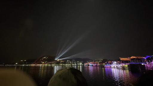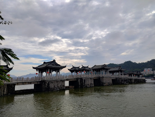 Typical for China: it is all new, but described as historical, often with more than a thousand years of history. So don't expect 'the real thing', but an enjoyable stroll over a special kind of bridge. The middle section is a pontoon bridge that is removed daily (at 17:30 until the next day 10:00) to allow cargo ships to pass. Entrance fee for one entry is ¥20. If you get off at the other end, you have to pay again. There is a colourful light show...