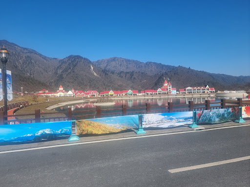 It takes 2.5 hours from Chengdu by car and this is all fully integrated ski resort with not just only ski facilities, but a beautiful lake (frozen during winter), sightseeing areas and hotel accommodation up on the mountain.
