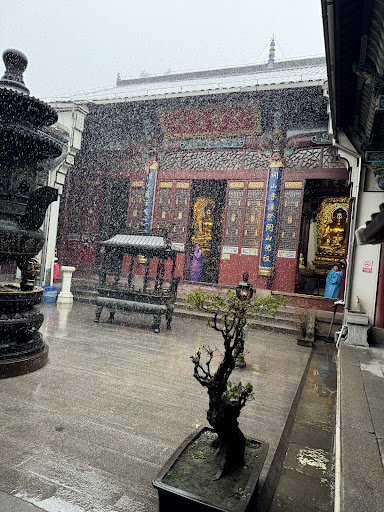 化成寺原名地藏寺,是九華山起源最早的寺廟又稱開山祖寺.化成源於法華經的佛教故事. 從九華山中轉中心花50元掃碼有公交車可以坐,下車後走一小段路遇到的第一個大的寺廟便是化成寺,化成寺前面有一個很大的放生池,池子裡面有魚和烏龜,但是最顯眼的不是它們,而是一群和平鴿降落在池子里,它們時而飛過化成寺上空時而飛回放生池,形成一個特殊的景觀. 進去以後每人可以領三柱香,但是必須在外面參拜的地方拜完才可以進去,寺里不允許拿香進去和拍照.但是可以掃碼捐款. 化成寺以地藏王菩薩為主(大殿和過殿),另有南無觀世音菩薩和南無釋迦摩尼佛,另外還有伽南菩薩(俗稱關羽)供參拜.
