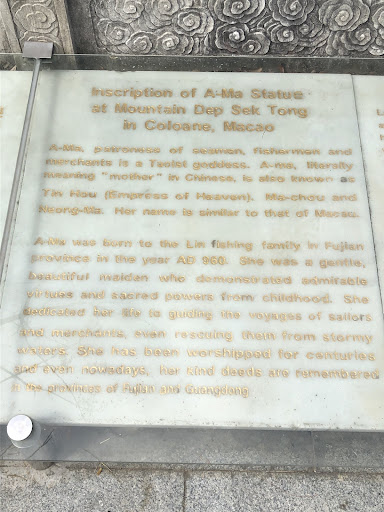 The statue height of 19.99 metres symbolises the year (1999) when Macau was reunited with mainland China as part of the handover from Portugal. There are information panels on the ground in front of A-Ma (Goddess of the Sea), describing the important role she plays in the lives of the people of Macau and this region of the world.