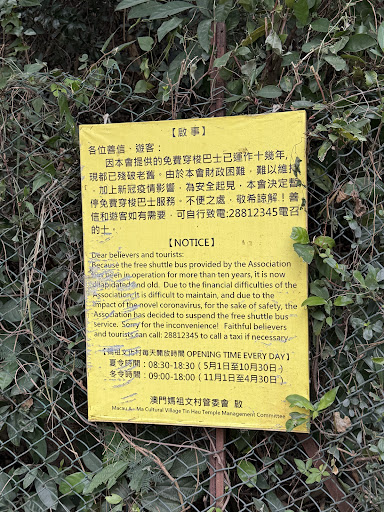 Read moreFrom macau we rode a bus number 26a to go to "parque de seak pai van" in coloane , from there has the free shuttle service located in parking area near the bus stop, which will bring you up to the "tin hau temple",and also dont forget to trail the road to the top peak were you can see the statue of Goddess A-Ma ,here's some of...
