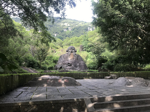 Iconic stone sculpture of Laozi, legendary founder of Taoism at the foot of Mount Qingyuan. Reaching this point from entry gate is easy.