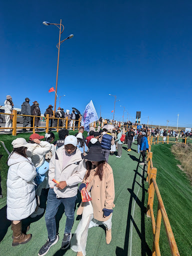 Ridiculously built up and touristy. It gets extremely crowded, especially on public holidays. This is what's called a "tourist trap" in the west. Long lines and lots of shops, horse rides, camel rides, yak rides, etc. The view of the lake is nothing special, it just looks like a regular rocky beach. However, this is one of the only places you are allowed to see the lake, as most of it is fenced in and controlled. You are not allowed to freely explore and find your own section of the lake like you would be anywhere else in the world. You take a shuttle from the visitor's center to the lake beach. Entrance costs 30 RMB. This would not exist outside of China because there is literally no reason for it to exist. The government decided to will this into existance. Overtourism is a serious problem in China, but no one here sees it as a negative. Most Chinese people see it as progress and only view it positively. I find it very frustrating. That being said, the mountains behind and the lake in front would be beautiful if all the crap...