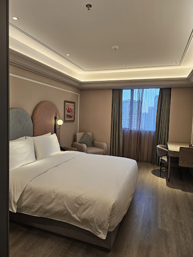 Read moreThe hotel is located in the heart of everything. From the main door, the left side is teemall shopping complex, street stalls selling F&B, souvenirs, etc. Gaodi Street (undergarments & shoes wholesale markets). Tianzi wharf for pearl river night tour just 13 mins walk away. On the right side is the famous Beijing Road Pedestrian Walk & Dafo temple.The hotel is a 30-storey building. Lobby at the ground floor. The 2nd - 12th floor is commercial. 13th - 28th is guess room. 29th is the hotel breakfast area. 30th is laundry, meeting & gym. Required room card for lift to access 13th floor onwards. The room is clean with basic amenities. I like the large TV with free channels to watch & the smart toilet bowl.The shower water pressure is strong. Just the overhead shower will drip cold water on my head if i shower more than 10 mins. All the hotels i visited have the same issue. The mattress is firm, but the pillow is too soft. I stayed for 4N, hotel cleaner will come to clean up the room every day & provide 2 bottles of 500ml minerals water.As for hotel breakfast, the food is variety with a bit of western & more local foods. Porridge, rice, noddles & soups, dessert, salad, fruits, etc. It would be nice if the hotel provided dimsum for breakfast. The funny part is that the hotel only provides Western fork, small chinese porcelain spoon & wood chopsticks. Weird combination 😆The hotel also provides a weighing scale machine for lugagge at the lobby next to the registration counter. Check in & check out is a breeze. You need to carry luggage until the roadside to reach a taxi as cars are unable to get in.Overall, it's a satisfactory stay....