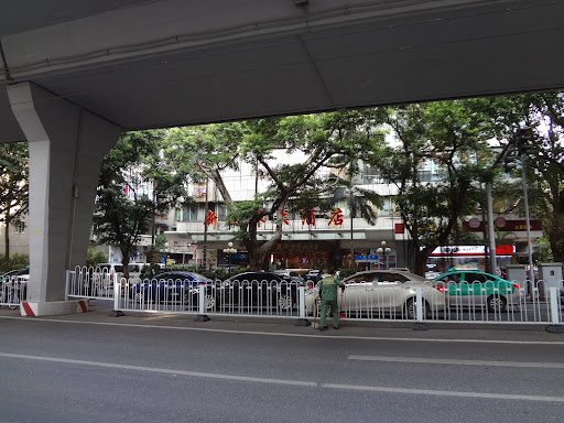 Nothing particularly great or outstanding about this property, except perhaps the location. It's just a shortish walk to Ximenkou railway station on Line 1, which takes you to Guangzhou East railway station directly and with a few changes in lines, can also get you to the airport and the other stations relatively swiftly. Take Exit C (by McDonalds) and when you leave the exit, turn right and when you reach the temple doors at the end of the street, turn left, then right again and you're at the hotel.||||The lobby is spacious, with it's own coffee shop and the first two floors are a Chinese restaurant that always seems busy. The staff could be a little friendlier, but this is China, so don't expect much in the way of smiles and help.||||The rooms are OK, particularly for the rates, but they aren't in tip top shape. A fair amount of shabbiness, with damaged furniture and old wood etc. The beds are very firm, but clean, as are the linens and towels. There is a computer in each room, which I didn't use, which might make up for the very annoying WIFI, which is ostensibly free. You need a Chinese phone to get sent a text with an access code to use the WIFI, It doesn't work with foreign numbers. Thankfully, the maid gave me her pass code, so I was able to use it.||||The carpets are patterned unusually, designed to throw your attention off that they're quite stained and grubby. It's actually very clever. The bathrooms are fairly clean, but not spotless. There's crappy soap, shampoo & bath foam, but no bath. The shower head in my room was useless and sprayed in all directions, but it does deliver hot water at a good pressure.||||There's 1.1L of bottled water per day as well as tea and a kettle, but the fridge wasn't working at all. Breakfast was supposed to be included in my rate, but wasn't. I didn't care. There are a lot of convenience stores locally to buy your own food.||||It's a low rate for an average property in a great location. You may find better, but not...