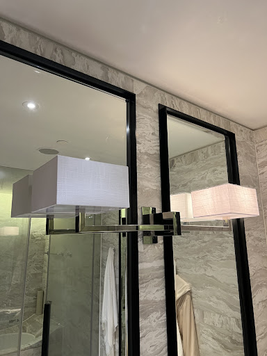 The washroom door was hard to open and close, and I had to leave the door opened for easier access at night, but was bothering by the flashing red and blue light all night long.