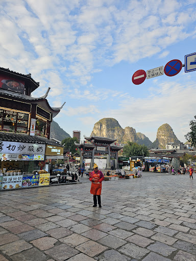 Xijie Pedestrian Street is a center of attractions and tourism in Yang Shuo Town. Where all people from all over the world come and give a visit, Then they can do sightseeing, eating and shopping. There are many rows of shops sell many things like souvenirs, bags, shoes, foods and a shop called 88, all things on that shop sell with the same price of 8 Yuan each. Not only in the shop but some people also sell something on the roadside or even the middle of the road, they put a table and sell something there. For kids and all age, there's some shooting gallery using a rubber ball gun and archery. If you can shoot the minimum target you will get a doll as a reward.