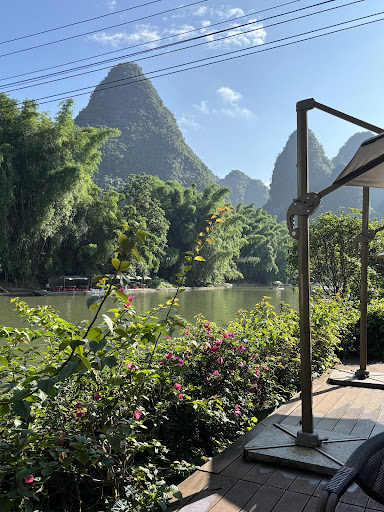 Read moreLocation: Located outside of the center- it cost 50 CNY taxi to get to West street from the hotel (west street is the pedestrian street).West street is very noisy, so it was nice to stay where the hotel is, it's more quiet, with a beautiful view- The hotel is near the bamboo rafting and other hikes in the area. ||||Room: We booked the room 303, which is beautiful! The room has king size bed (we slept very well with our little 3 years old boy), it was a little hard mattress but still comfortable. The bathtub had all windows around, so we enjoyed the beautiful view of the river and mountain from our bath, without worrying about mosquitoes. The room has a big terrace with the same gorgeous view, we had some of our meals there.||||Hotel: The service was amazing. There were interns working for the summer to practice their english, they told us all about the area, where to go and what to do. The hotel has not expensive guided tours(bamboo rafting, biking along the river, visit minority villages...), but we just took a map and free bikes from the hotel and biked along the river. Some of the bikes had a kid seat in the back which was perfect .||The breakfast was included and very good (western and chinese)- the lunch/dinner menu was not amazing but good, and not expensive.||The pool was getting cleaned or fixed so we used the pool from the hotel next door (same owner, same "hotel", same kitchen... just a different building and style)||The hotel had laundry machine and dryer we can use for free- it was...