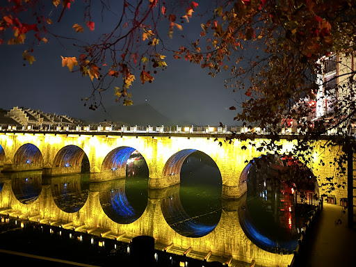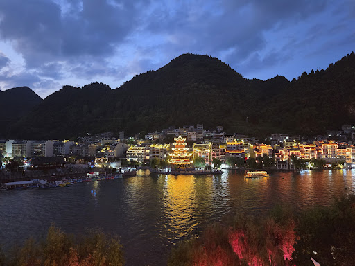 A lovely old town with meandering Wuyang River flowing alongside riverside inns along the busy tourist streets. Lots of local snacks & several historical spots to check out along the dreamy town. Food & transportation within town still inexpensive compared to Miao village in Xijiang. Can explore the town on foot as the area is pretty pedestrian friendly or hop on/off the old town wooden tram like bus for RMB2. The shopping area & buildings along the river bank are lighted up at night, giving it a warm welcoming glow to an otherwise ancient town. Stayed 2 nights at a local inn, 山风河声 with balcony facing the riverside in Oct 2023. A nice modern inn equiped with washing machine etc & stringent check out time by 12pm or locked out :-) Love to...