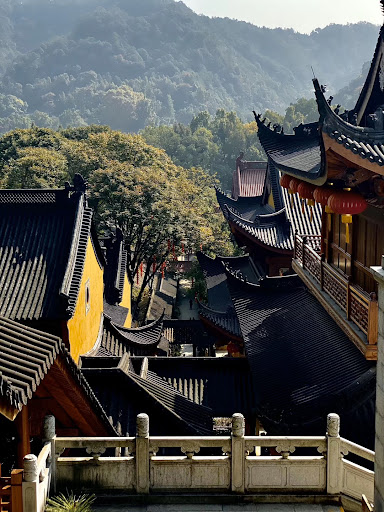 เราเจอวัดนี้จากการเลื่อนๆรีวิวดู กว่าจะเดินทางไปถึงวัดค่อนข้างลำบาก (แต่จริงๆถ้านั่งรถบัสคือง่ายมาก) แต่พวกเราเลือกที่จะเรียกแท็กซี่ ซึ่งคิดว่าปักโลเคชั่นไม่ผิดนะ 😅 สรุปแท็กซี่ไปจอดตรงทางเข้าวัดส่วนไหนก็ไม่รู้ ที่ต้องเดินเข้าไปในป่าไผ่ นอกจากนั้นวันก่อนฝนตกถนนก็เป็นดินแฉะๆ เดินขึ้นเขา จนหันมามองหน้ากับเพื่อน และพูดกันว่า “วันนี้เราจะถึงกันไหม” แต่ด้วยความอยากทำบุญขั้นสูงสุดเราเดินตามทางไปเรื่อยๆและก็เจอกำแพงวัดค่ะ...รอดนะคะครั้งนี้เราถึงวัดค่ะ 📍 No.338, Tianzhu Road, Xihu...