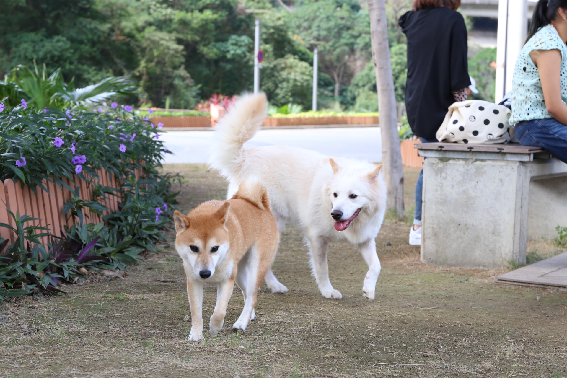 At Penfold, Cyberport, and W Kowloon, we've seen a few off-leash aggressive dogs whose owners were not able to control them when they bolted off to attack other dogs far away (I don't mean playfighting - I mean unprovoked fierce snarling and biting that terrified or even injured the other dog). It would be more difficult for that kind of thing to happen here, given the layout - and if it did, there would be plenty of witnesses. Overall I felt the owners here were more responsible and better at keeping an eye on their dogs.