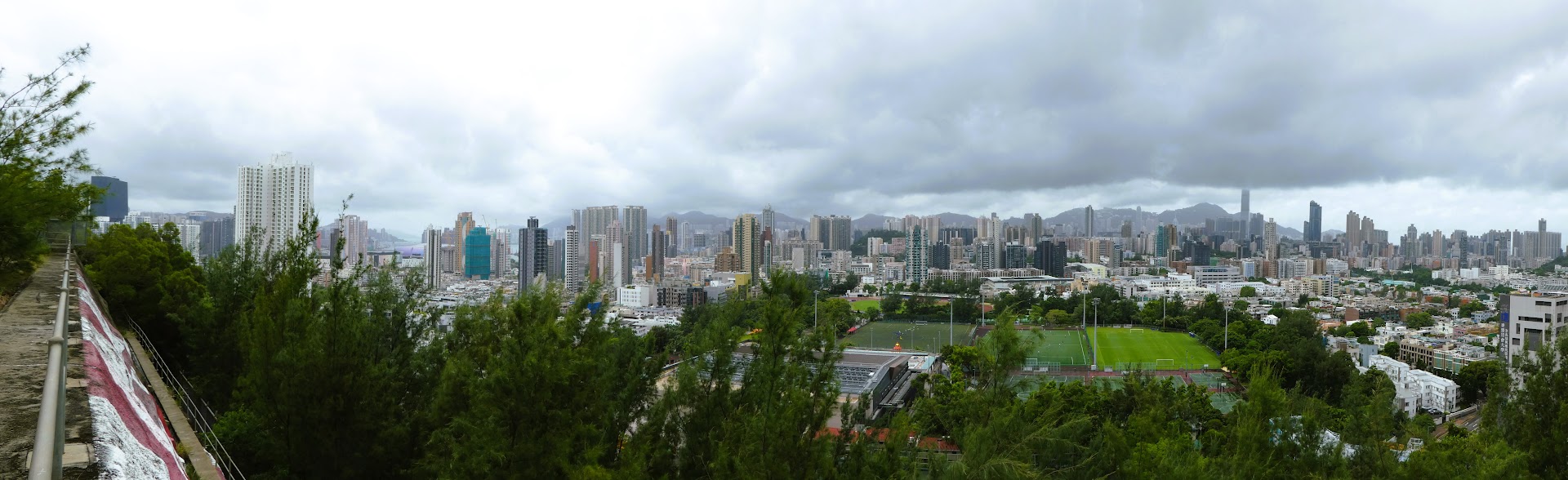 The view from here is amazing. On the one side you can see old Kai Tak now with lots of construction, ICC, IFC and even the peak on a clear day. I think you can also see Wong Tai Sin in a distance.