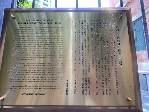 Read moreThe Former French Mission Building is a declared monument in Hong Kong and nice opportunity to view one of the few preserved buildings from the colonial period. Situated upon the elevated landscape on Battery Path, this structure was constructed in 1915, made of granite and red/orange brick in Neo-classical style.