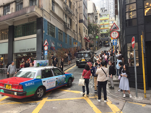 At the intersection of Hollywood Rd and Graham Street near Lyndhurst Terrace, you will find an interesting stretch of street art which has become very popular with tourists in the past year or so.