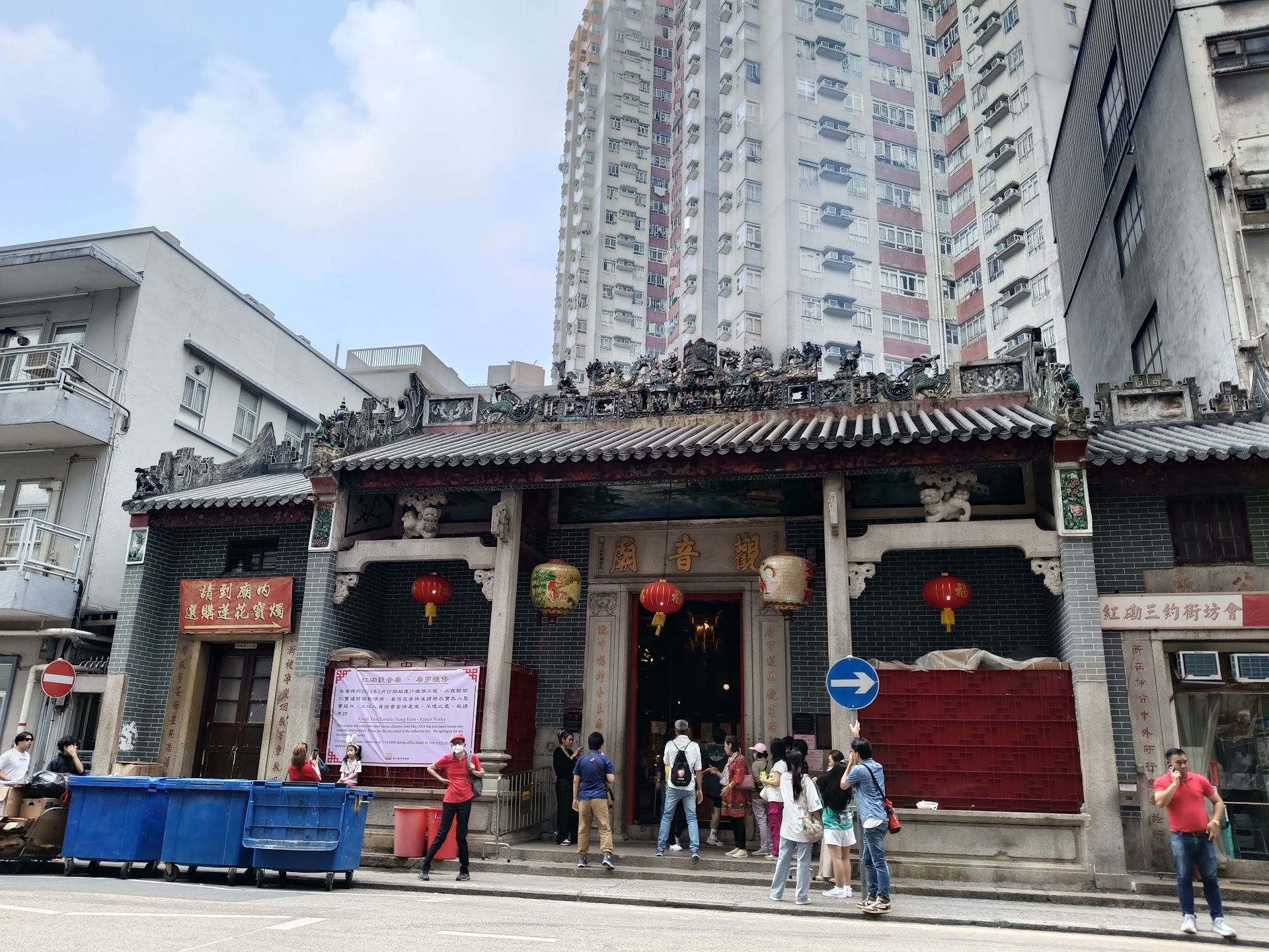 The Kwun Yum Temple is the most famous among the great number of them in the territory. It was built in 1873. In 1909, a road was constructed to connect Hung Hom with Tsim Sha Tsui and Kowloon City. When workers were digging in the hilly areas, red water spouted from the ground. It was rumoured that the vein of the dragon that inhabited in that area had been ruptured as a result of the work. The workers were frightened to continue with the road construction. Despite laboratory findings that the colour of the water was due to a mixture of underground deposits of sulphur and mercury, the workers were still worried and donated money to renovate the temple in the belief that Kwun Yum would be able to help them to avert any subsequent disaster.
