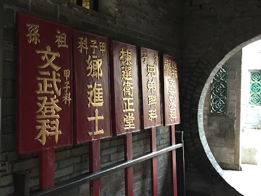 The building was constructed of green bricks with its walls and columns supporting the pitched roofs. The recessed entrance has fine granite door frame, wall bases, wall corners and lintel above which is the finely carved stone name board of the study hall. The entire building is with richly ornated decorations. Its ridges are with mouldings of auspicious floral treasures and geometric patterns. Wall and gable friezes and fascia board are with paintings and carvings of fruits, flowers, treasures, scrolls and...