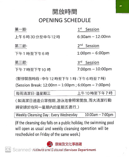 Read moreVery large Olympic sized indoor pool. Also has an outside roof top swimming pool, with sun lounging areas. This pool has good opening hours suitable for swimming early hours in the morning up until 10pm at night. Open most days aside from days when they clean the pool which usually have alot of advanced notice so time is not wasted for swimmers. Very well managed pool, Nice changing rooms and shower facilities with good locker systems to keep valuables. Free drinking fountains available. As well as multiple vending machines that take COINS and octopus cards. Swimming pool entrance fee is approx $17 which I feel is worth the money. If you just want to go get a hot shower though, right next door to the main pool there is free shower and changing room facilities available, also with Hot shower, hair...