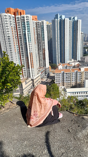 Featuring recently repainted hill slope . Small hill with great view over kowloon. Nice and quiet corner in the urban