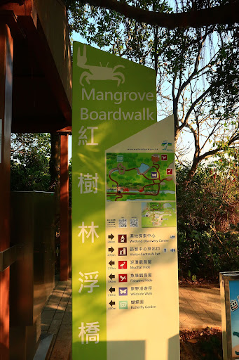 Fun boardwalk section within the outdoor reserve area at the Hong Kong Wetland Park. Here you walk a boardwalk over a mudflat and mangrove forest. Do look out for fidler crabs and lots of mudskippers in this area...