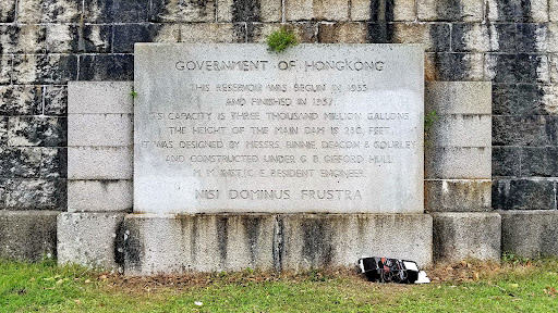 What you find here is a memorial stone from the government of Hong Kong with a brief historical record of the establishment of the Shing Mun Reservoir in 1937. It is fixed into a granite brick wall on the roadside next to the reservoir.