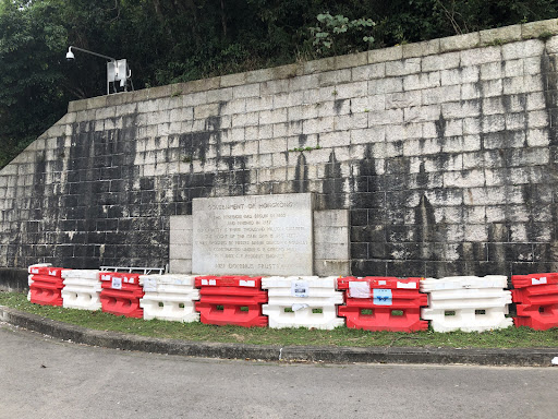 What you find here is a memorial stone from the government of Hong Kong with a brief historical record of the establishment of the Shing Mun Reservoir in 1937. It is fixed into a granite brick wall on the roadside next to the reservoir.