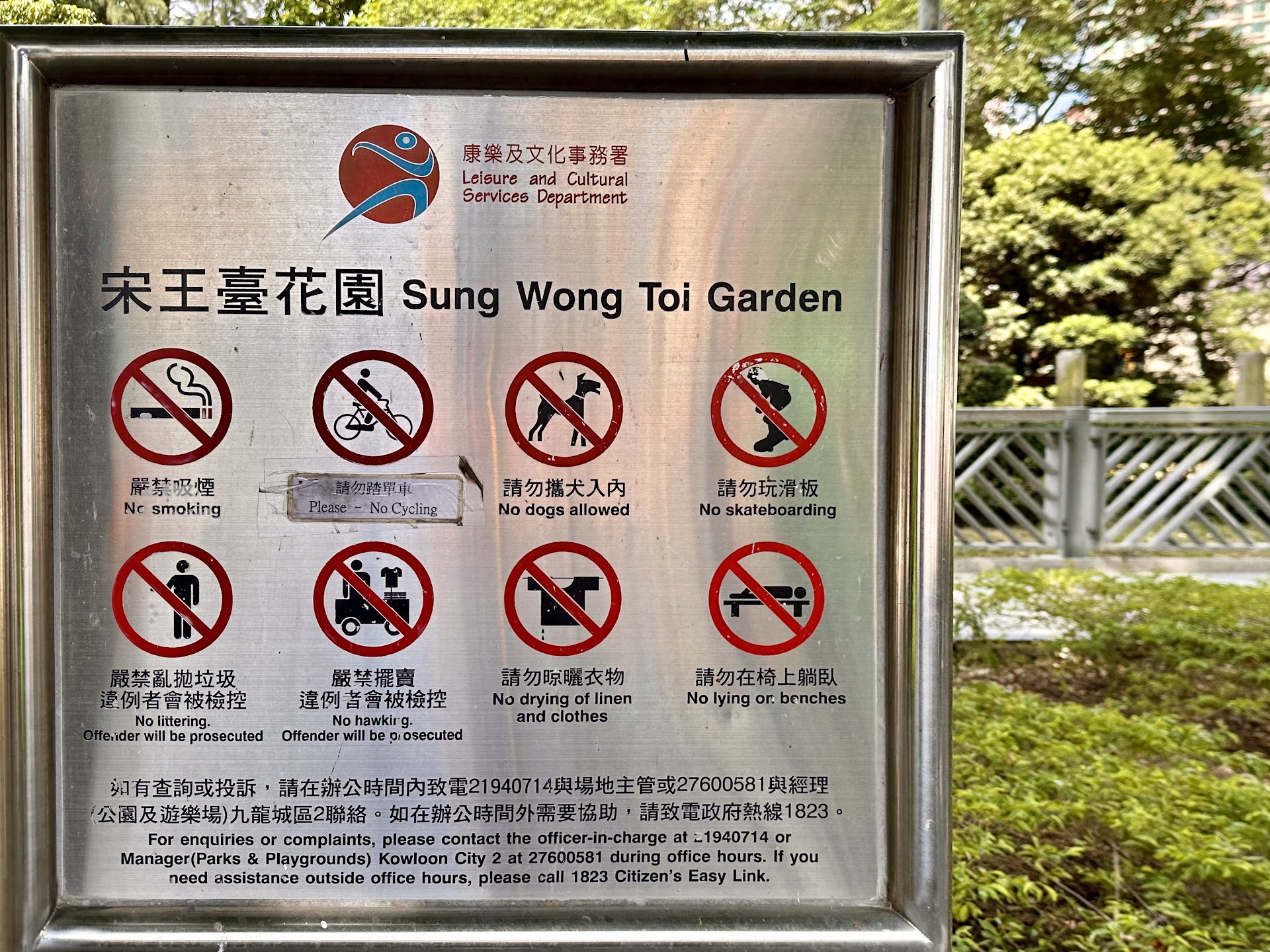 Sung Wong Toi Garden (Chinese: 宋皇臺花園 ) is a park located in Ma Tau Chung 馬頭涌, Kowloon City , Hong Kong . It was officially completed at the end of 1959. Its attraction is a commemorative stone tablet engraved with the words "Sung Wong Toi".(宋皇臺) According to legend, the Southern Song 宋Dynasty Emperor Song Duanzong Zhao Shi 南宋皇帝宋端宗趙昰 and his younger brother Song Shao Emperor Zhao Bing 宋少帝趙昺 were chased by the Yuan Dynasty 元army and fled south to this place. In order to commemorate this event, later generations specially carved the words "Songwang Terrace" on the big stone. The "Song Wang Terrace" stele was originally a huge stone, standing on a hill called "Holy Hill" on the Ma Tau Chung beach (which later became the area around the passenger terminal of Kai Tak Airport ). The "Song Wang Terrace" stele was later moved and was placed at the current site of Songwang Terrace Garden about 300 feet away from its original location. There were road constructions when I visited, and there were no public washrooms inside the park. The MTR station of Song Wong Toi is just next...