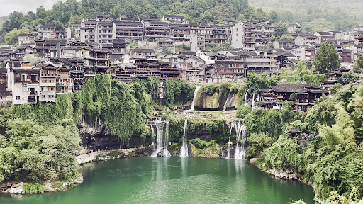 By day, the alleys resound with sizzling woks, hawkers yelling, and the never-ending thunder of that 60 meter wide waterfall crashing through the town like an unpaid landlord. By night, the waterfall glows under neon spotlights, houses sparkle with lanterns, and the whole town feels like it’s auditioning to be China’s next music video backdrop.